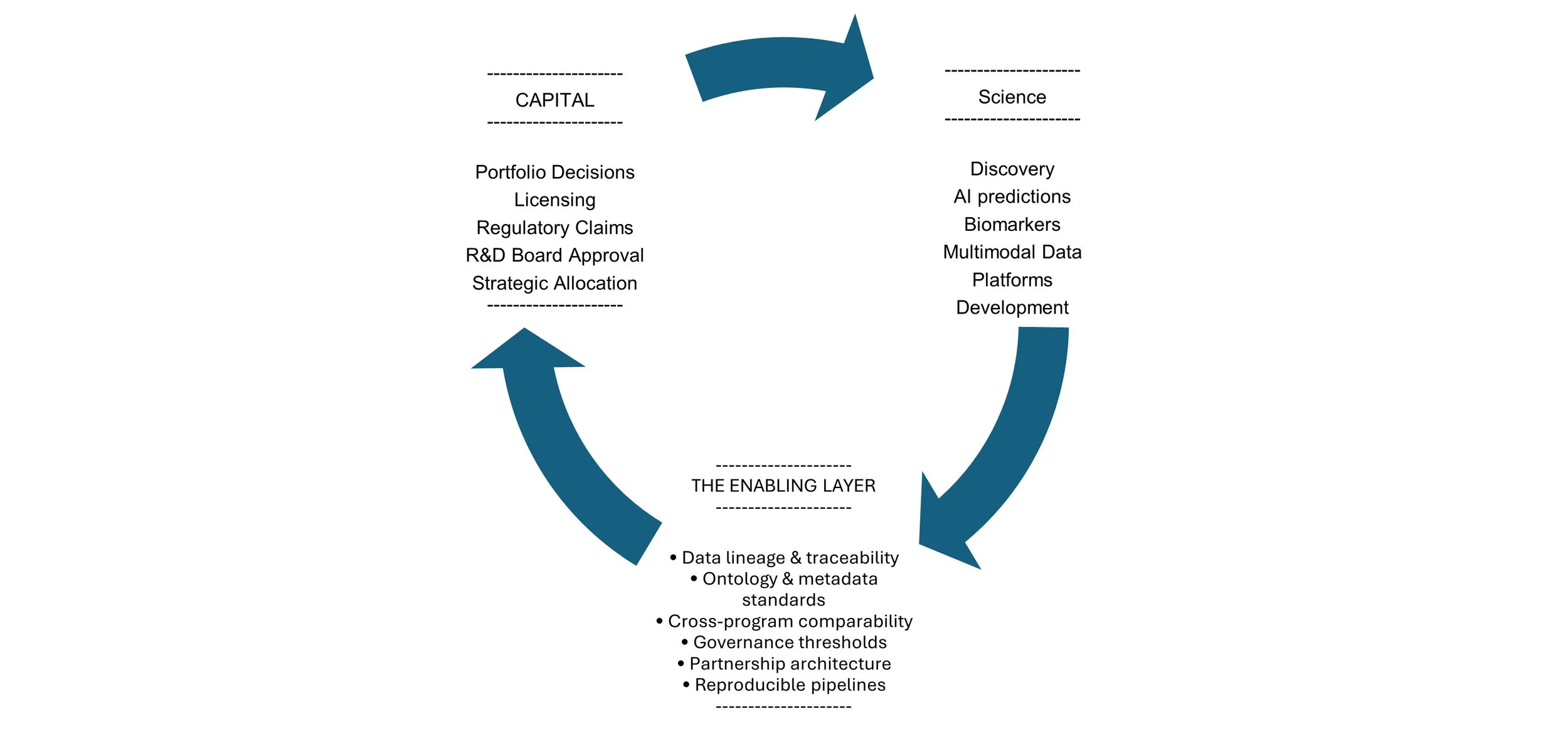 In pharma and biotech, the enabling layer is the architecture that allows evidence to travel intact: